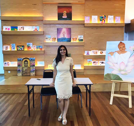 Her paintings are being adapted on fabric for the Kimkara Designer brand for the collection of 2020.Her paintings are on display in a private collection in Malaysia .She is currently working on creating a body of work for her upcoming exhibitions, while also teaching young budding artists.